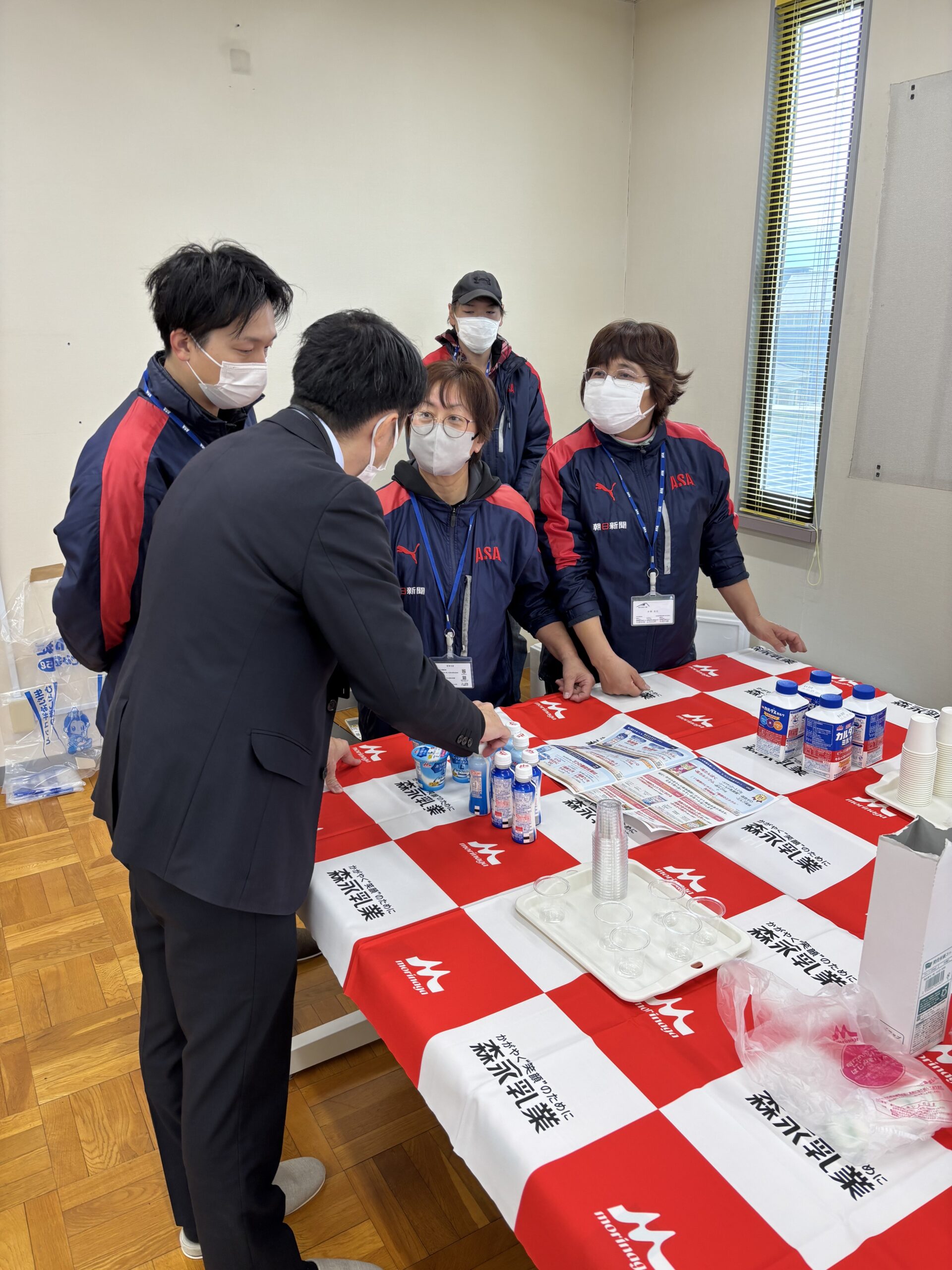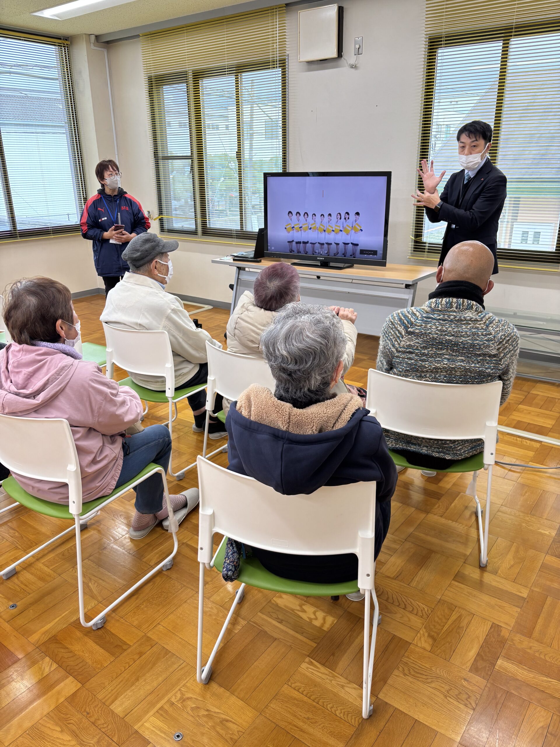 ビデオを鑑賞した後、測定器で骨の健康チェックをおこない、談笑しながら乳製品を試飲しました。